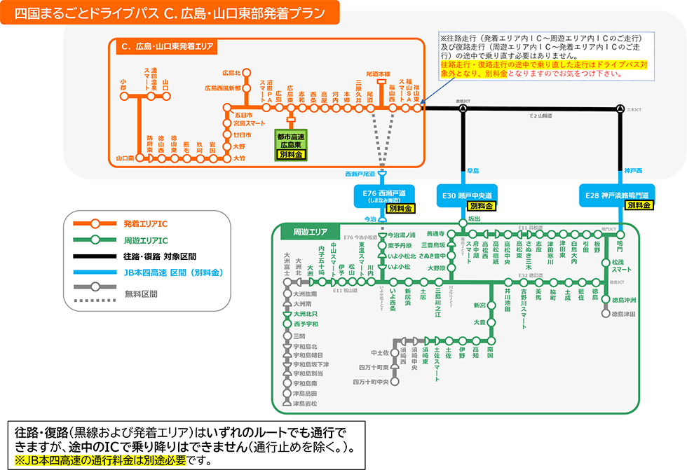 ※周遊エリアから本四高速区間へ走行される場合は、周遊エリア内の対象ICで乗り直す必要はありません。