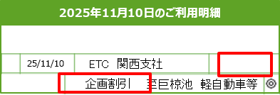 本プランのご利用期間中に乗り放題エリア内をお申し込みいただいたETCカードを用いて軽自動車で走行された場合、プラン料金の確定後に軽自動車で走行した通行料金を別途請求させていただきます。